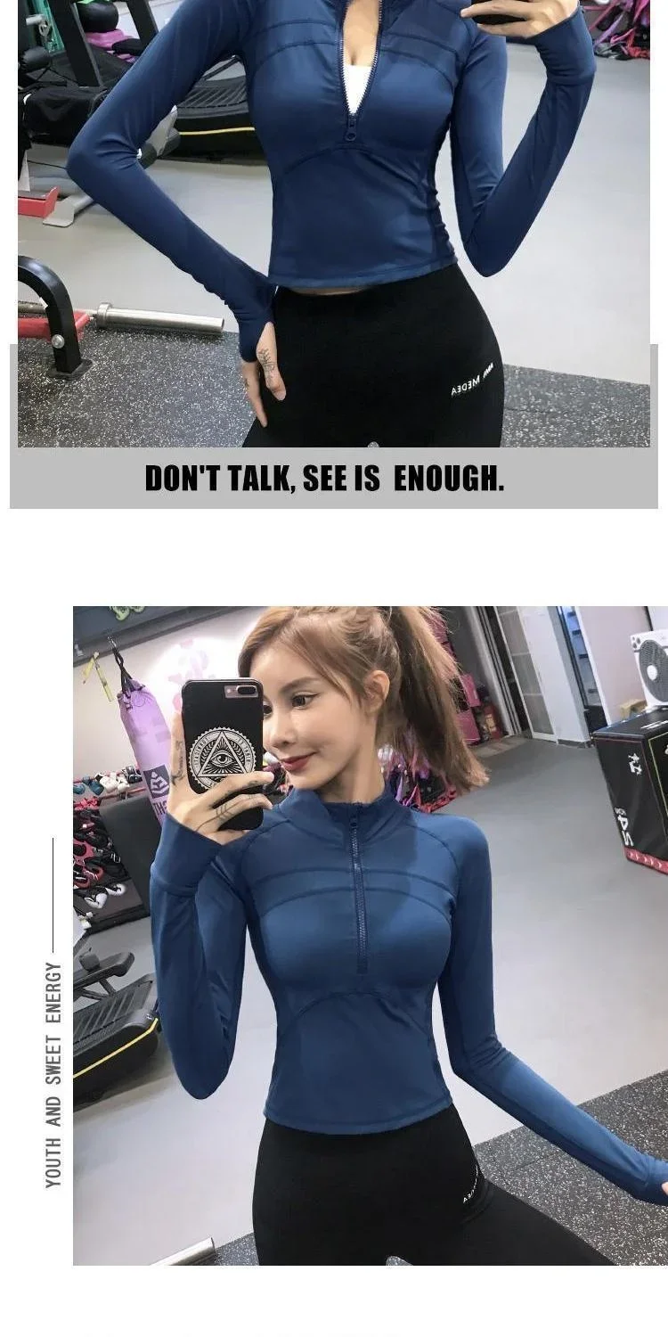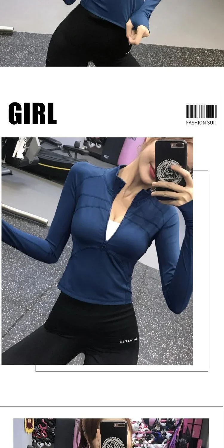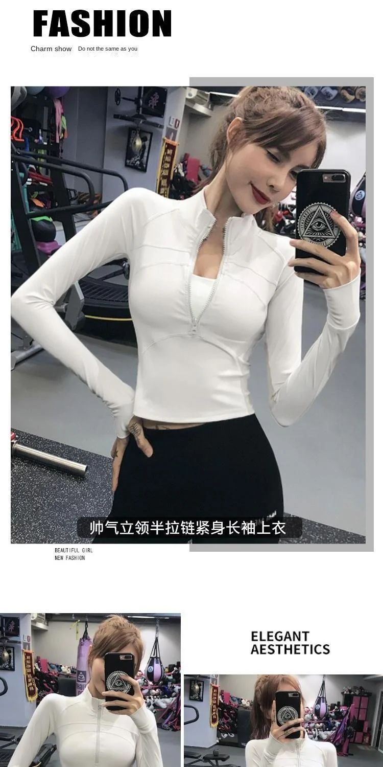 Fitness Sports Jacket Women's Zipper Long-sleeved Stand-up Jacket Quick-drying Training Yoga Clothes Summer Breathable Top